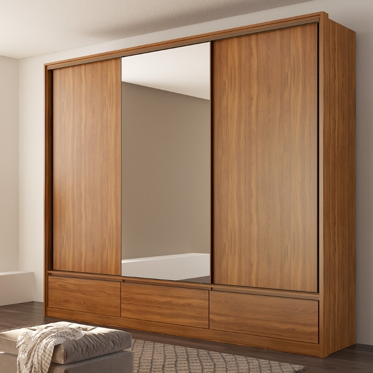 Guarda Roupa Barcelona 3 Portas De Correr Espelho Jacaranda Madeirado Robel Moveis