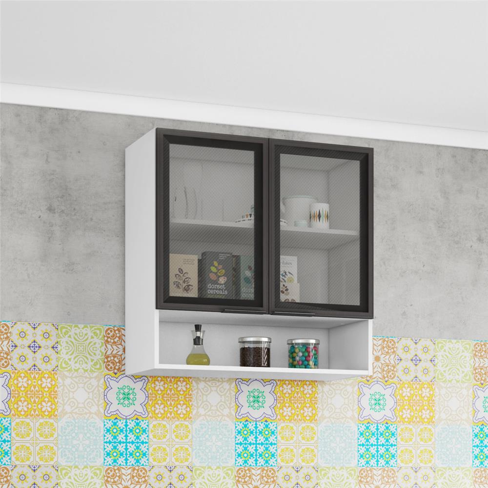 Armario Aereo Bartira Rubi Ex Izabel Com 2 Portas De Vidro E Nicho Cozinha Modulada Ponto Frio 7995657
