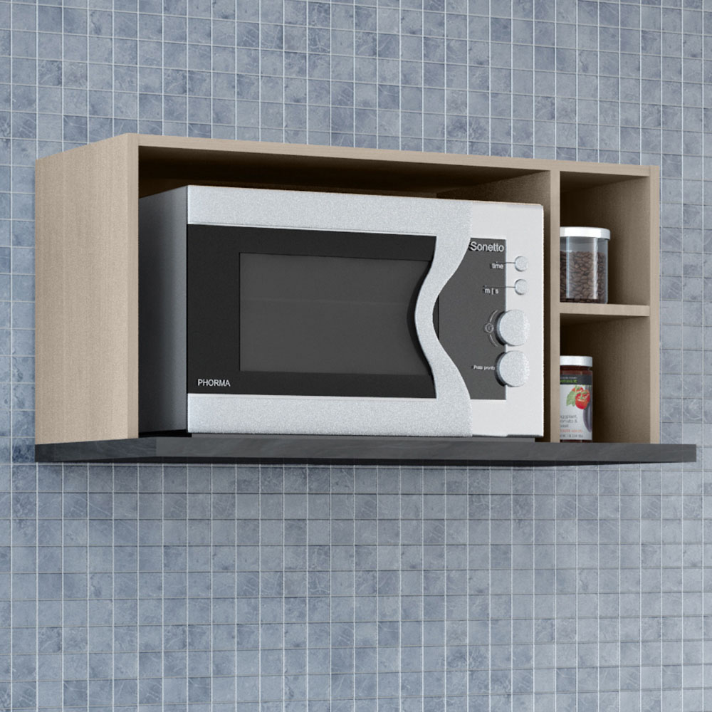 Armario Aereo Duplo 120cm Com Nicho Para Cozinha Ditalia Carvalho E Preto Cozinha Modulada Casas Bahia 6855452