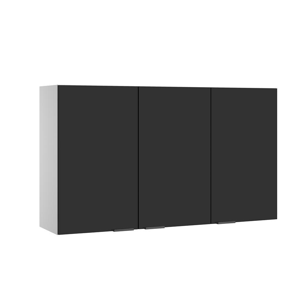 Armario Aereo 3 Portas E Nicho Multipla Preto Bertolini Cozinha Modulada Extra 10371632