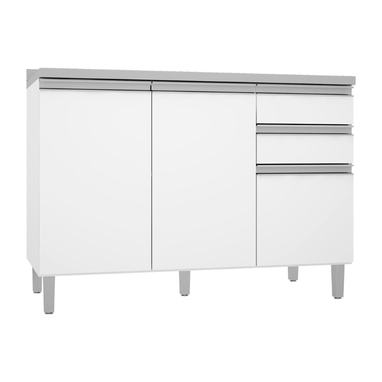 Balcao Para Pia 120cm 3 Portas E 2 Gavetas C8100 Evidence Branco Poliman