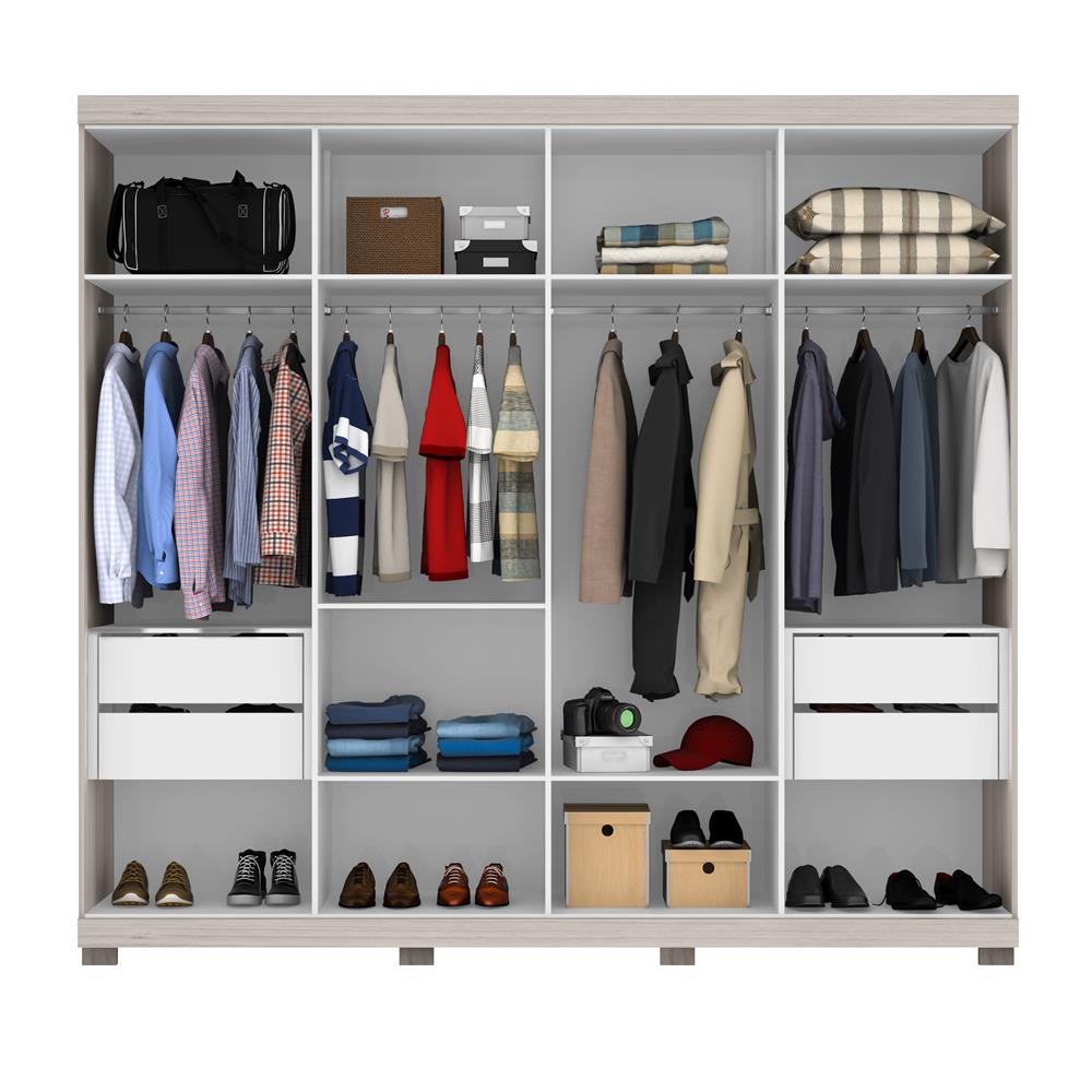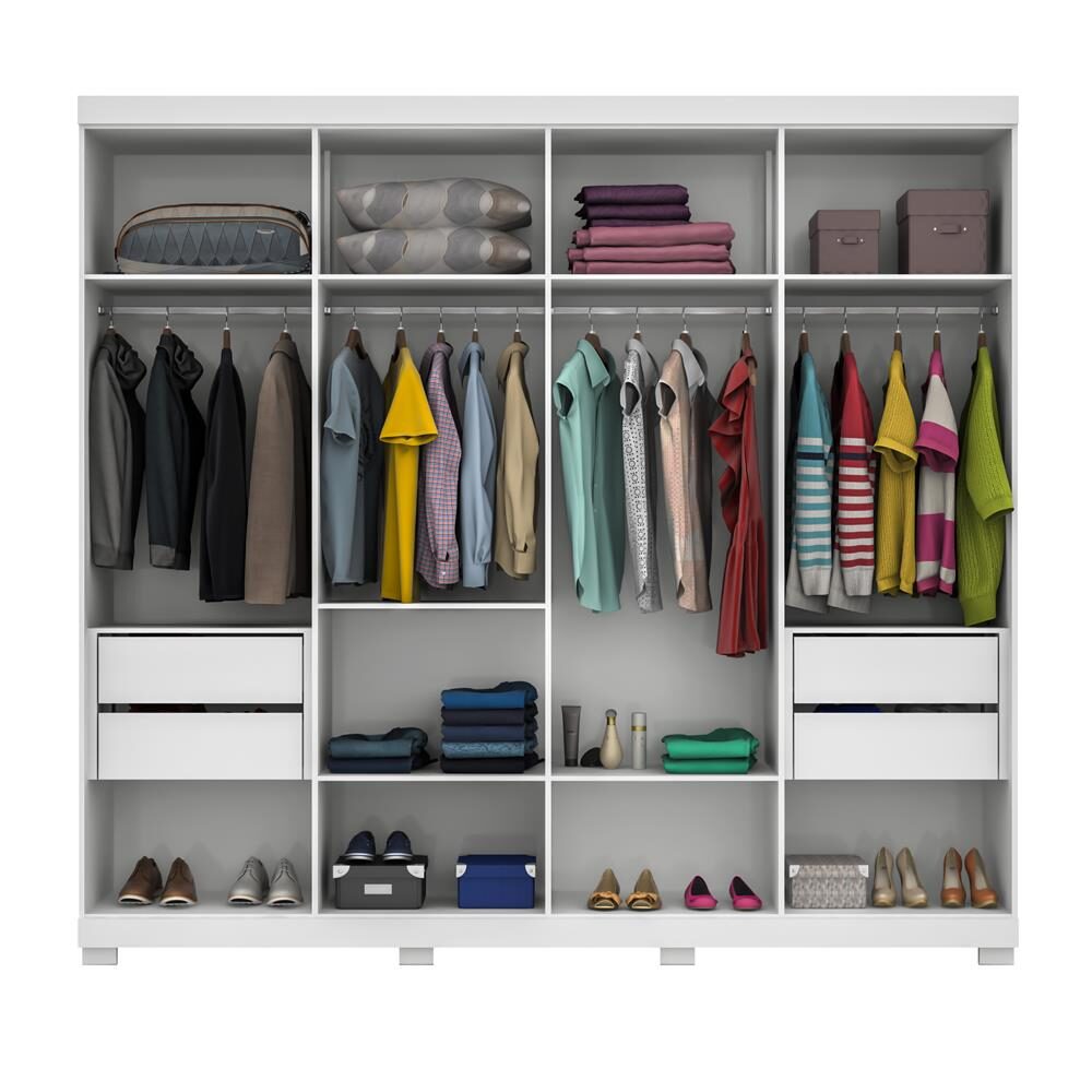 Estruturado em mdp de alta qualidade possui acabamento frontal em alto brilho puxadores em mdf amplo espaço interno para a organização das suas roupas calçados e acessórios prateleiras internas para melhor. Guarda roupa bartira curitiba ii com 8 portas e 4 gavetas branco altura 2 22 metros largura 2 40 metros profundidade 55 60 centimetros peso 196 60 quilos. Elaborado com um design moderno possui estrutura em mdp de alta qualidade acabamento frontal em alto brilho puxadores externos em mdf prateleiras internas para melhor. Esses compartimentos são ótimos para colocar calcinhas cuecas maiôs biquínis meias e acessórios.