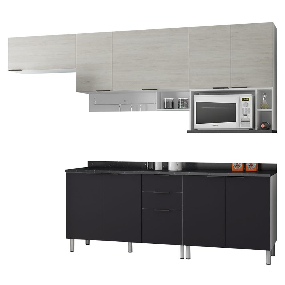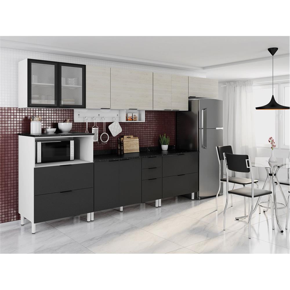Cozinha Bartira Izabel Com 9 Portas E 3 Gavetas Grapia Platinum Forno De Micro Ondas Philco Pmo26b 26l 220v