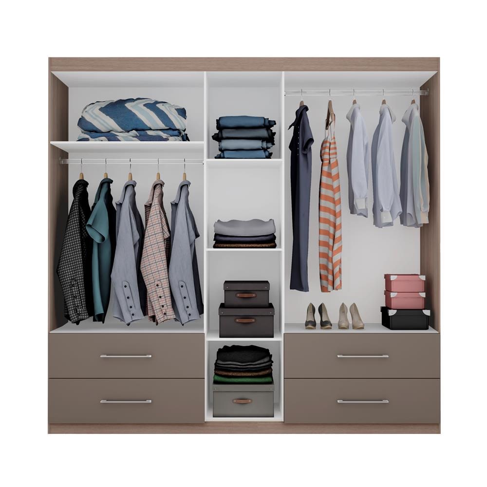 Para que as suas roupas calçados e acessórios fiquem muito bem organizados em seu quarto o armário bartira texas é configurado com amplo espaço interno.
