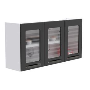 Cozinha Colormaq Leblon 3 Pecas Em Aco E Vidro Branco E Preto Paneleiro Armario De Parede E Mini Armario Colormaq