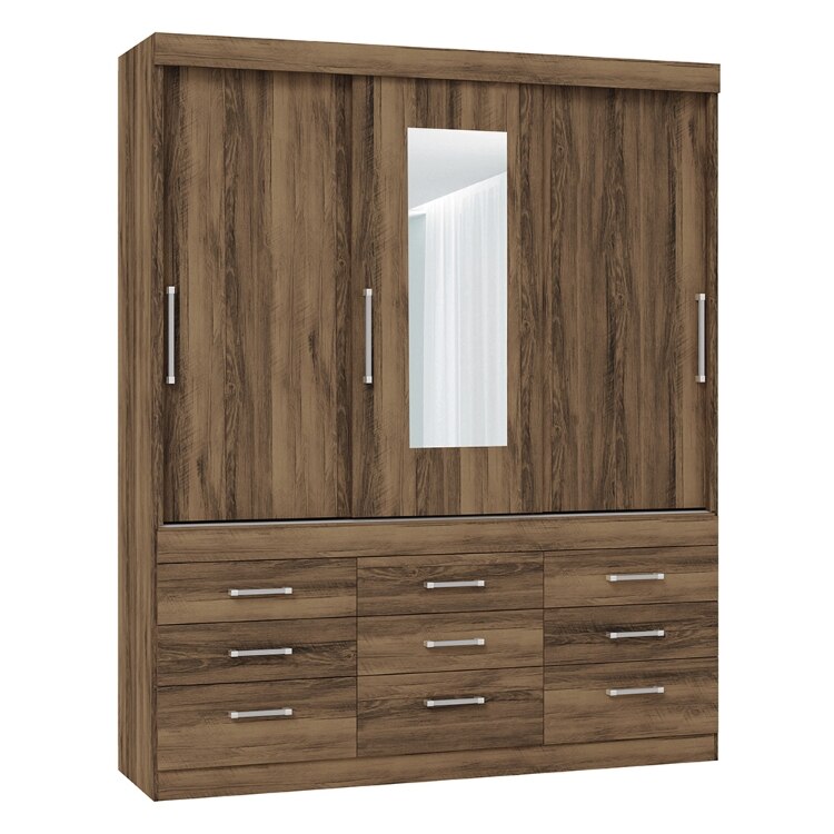 Guarda Roupa Com 3 Portas De Correr 9 Gavetas E Espelho Cafe Nt5030 Notavel Moveis Casa Aberta Brasil