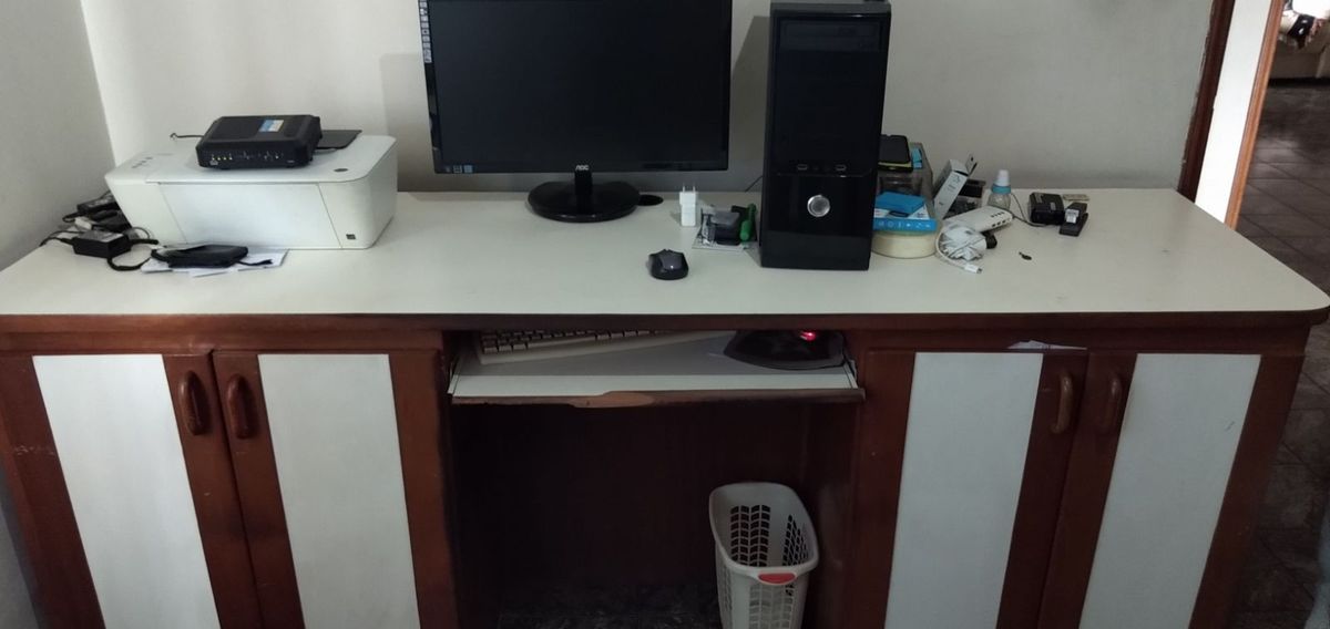 Mesa De Madeira Grande Pra Computador Com Armario Mesa Usado 36064192 Enjoei