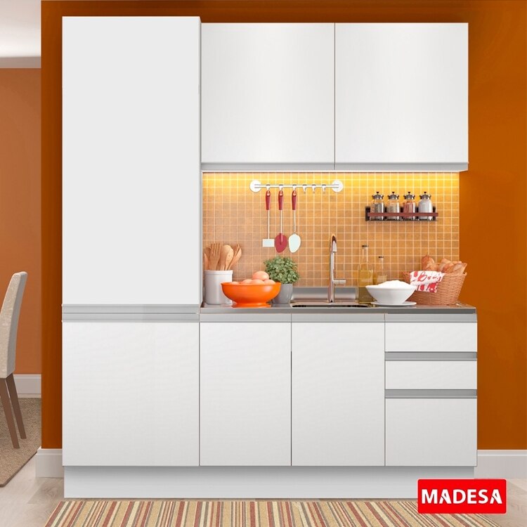 Cozinha Completa Glamy 7 Portas 1 80m 3 Pecas Branco Madesa