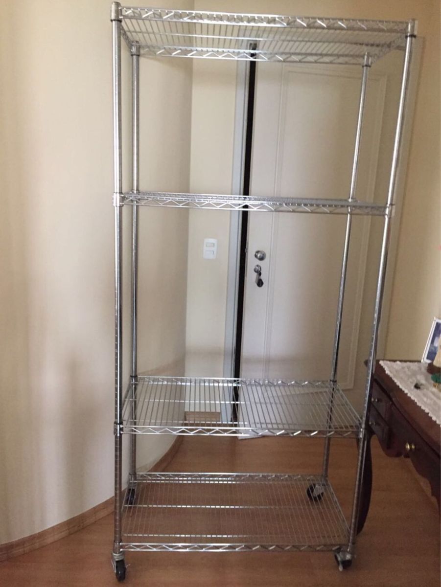 Estante Aco Cromado 5 Prateleiras Rack Aramado Com Rodinhas Rodizios Wlm8268567 Estante Aco Prateleiras De Arame Estante De Aco Cromado