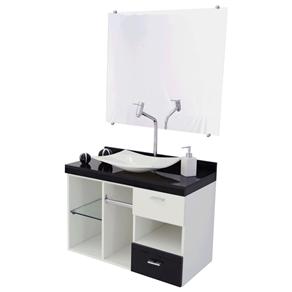 Gabinete Para Banheiro Vtec Sol Com Cuba E Espelho 45 X 65 X 35 Cm Branco Preto Conjunto Para Banheiro Extra 643258