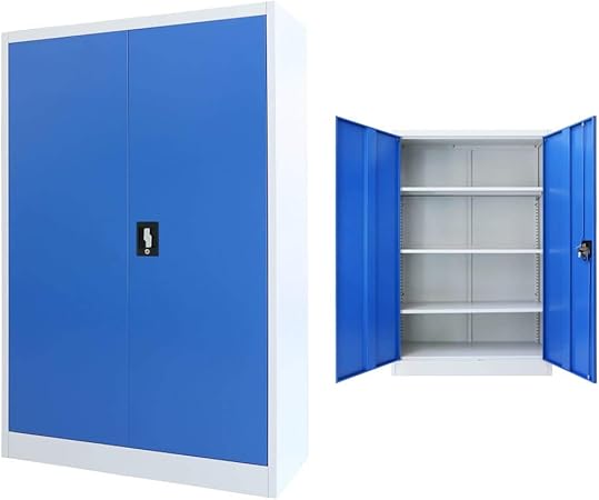 Disfruta Tus Compras Con Armario De Oficina De Metal 90x40x140 Cm Gris Y Azul Amazon Es Hogar