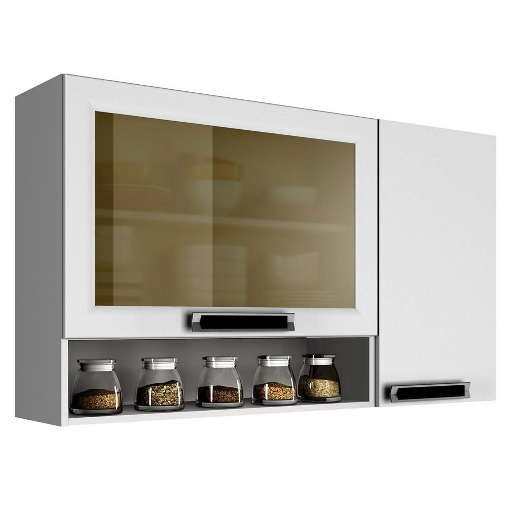 Armario Aereo Para Cozinha 3 Portas Com Vidro 1 Porta Basculante Tarsila Itatiaia Branco Madeiramadeira