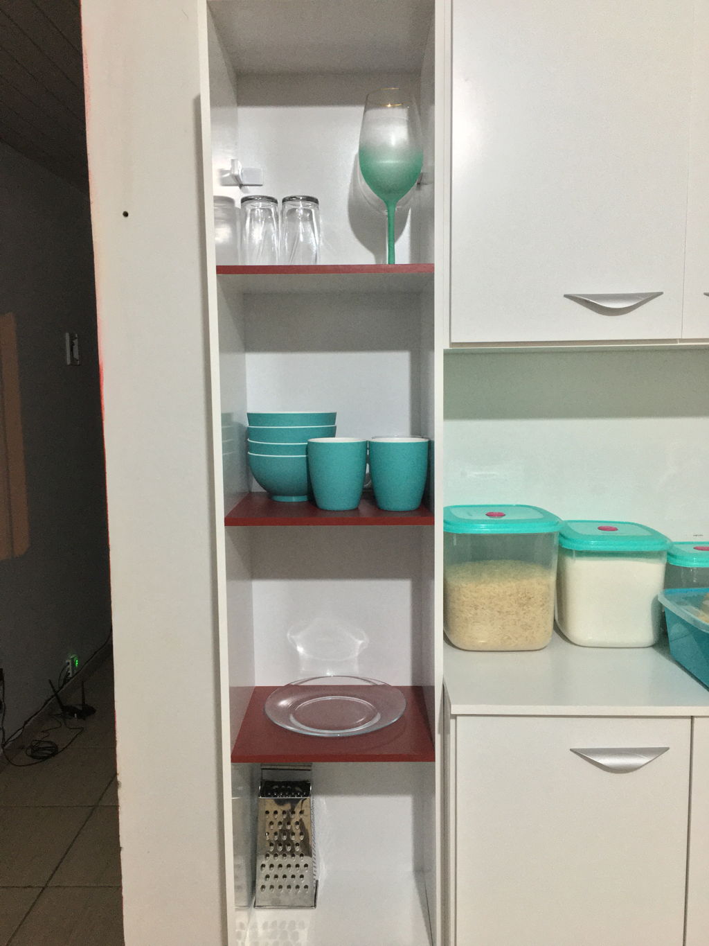 Possui diversos espaços para melhor acomodar seus objetos e utensílios domésticos.
