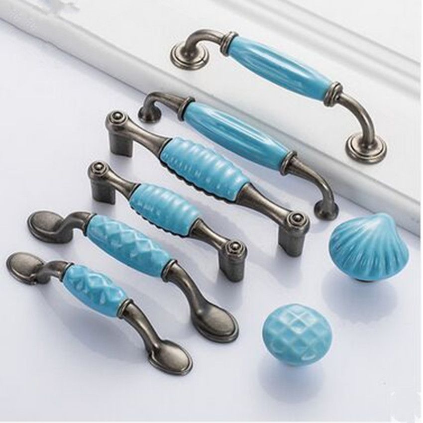 Compre 5 Azul Estilo Mediterraneo Moveis Lida Com Azul Antigo Prata Comoda Armario De Cozinha Lida Com Casca Azul Botao De Gaveta De Ceramica De Tongchuang0819 104 23 Pt Dhgate Com