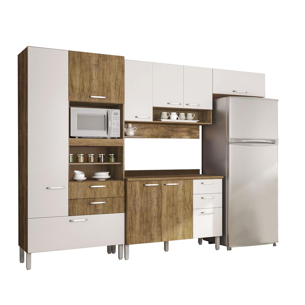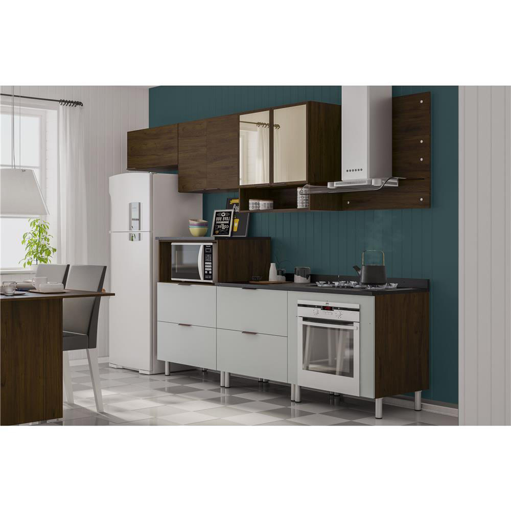 Cozinha Bartira Glamour Com 6 Portas E 3 Gavetas Branca Imbuia Compre No Shopfacil Com