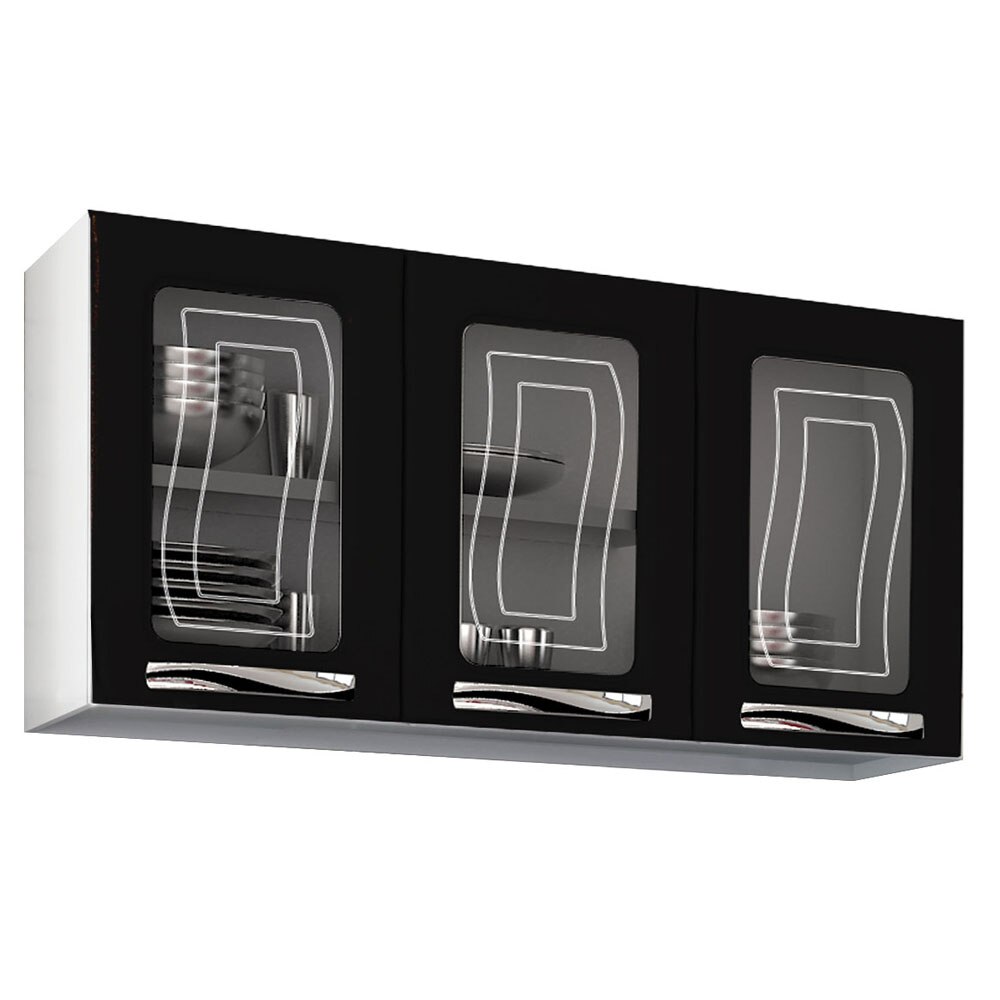 Armario Aereo Colormaq Ipanema Com 3 Portas Em Vidro Cozinha Modulada Extra 1190316