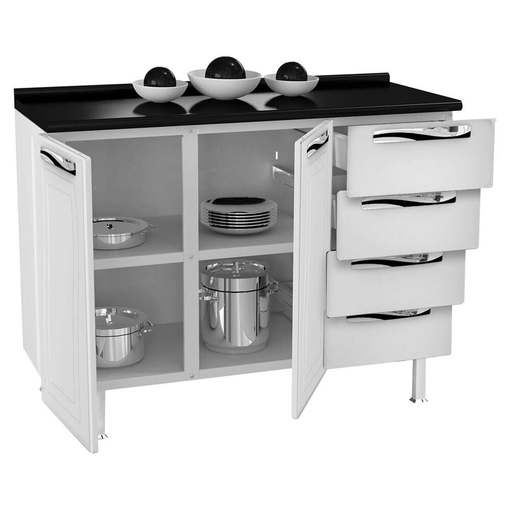 Balcao De Cozinha Ipanema 2 Portas 4 Gavetas De Aco Branco Preto Colormaq E Bom Vale A Pena