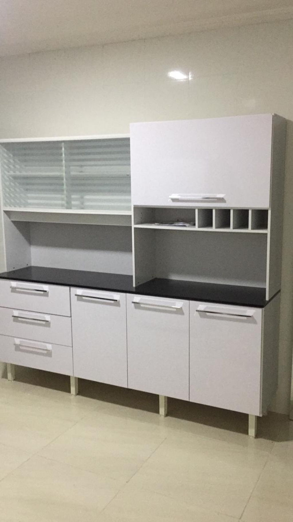 Armario De Cozinha Aco 8 Portas 5 Portas De Vidro 3 Gavetas Multipla Bertolini Branco Preto Amazon Com Br
