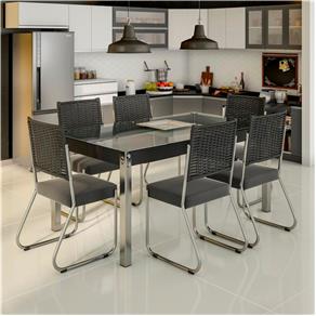 Conjunto De Mesa Italia 1 40m Tampo Granito Com 6 Cadeiras 591 13 Madmelos Branco Preto
