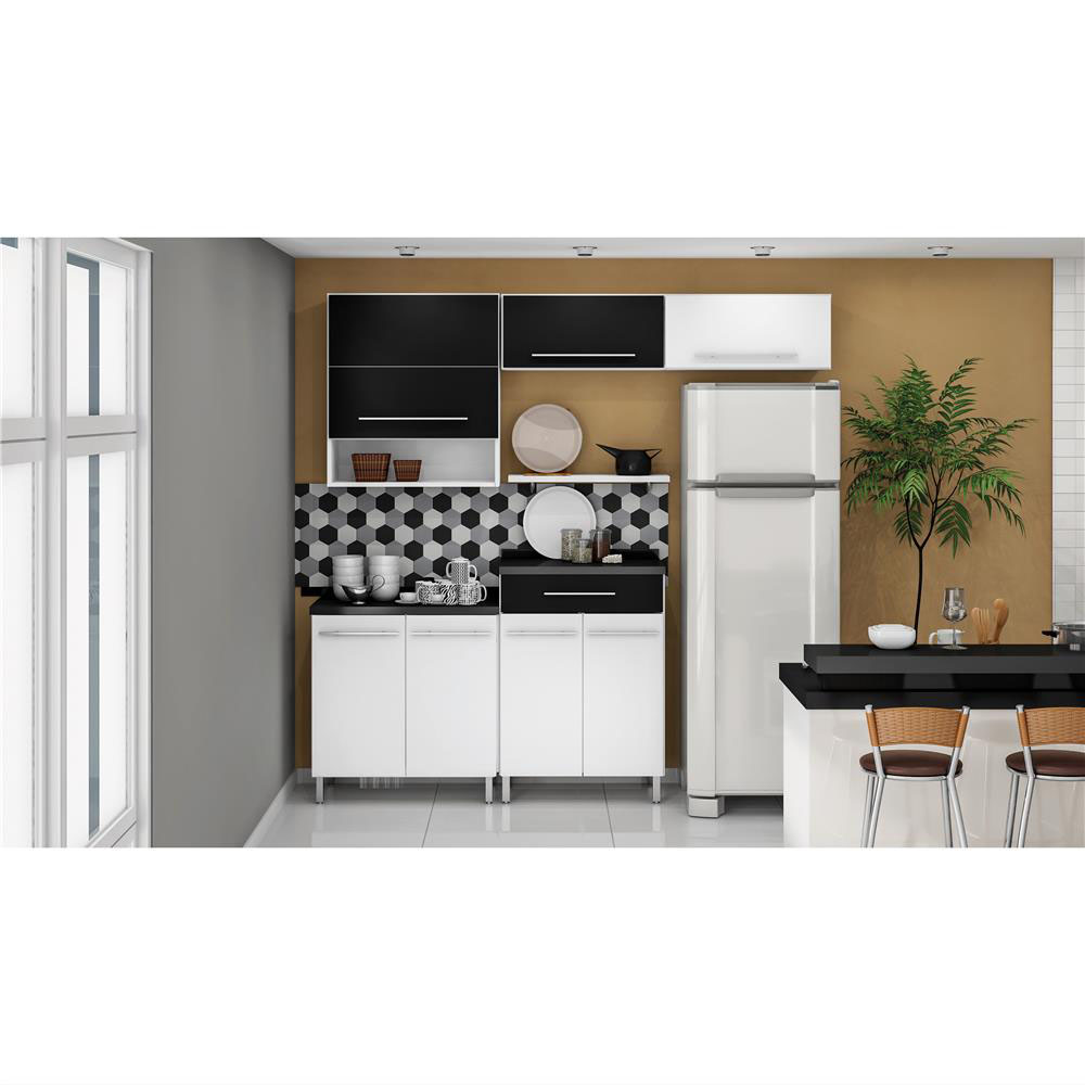 Cozinha Bartira Glamour Com 16 Portas E 4 Gavetas Branco Preto