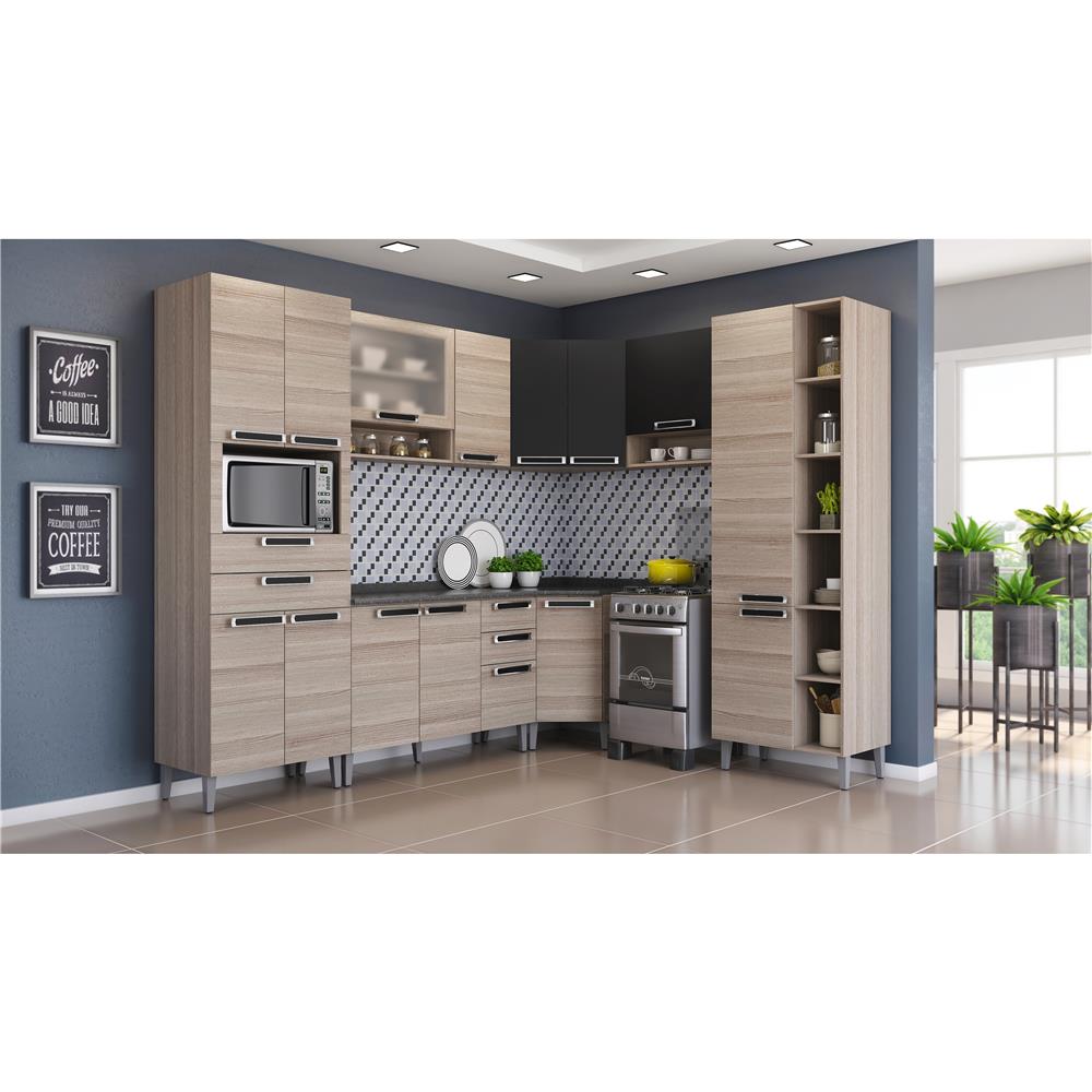 Cozinha Itatiaia Royale Com 16 Portas E 5 Gavetas Madeirado Preto Cozinha Compacta Extra 9160041