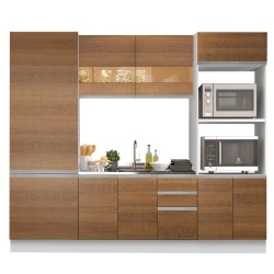 Jogo De Cozinha Completo Atenas 4 Pecas 9 Portas 3 Gavetas Castanho Tannat Delmarco
