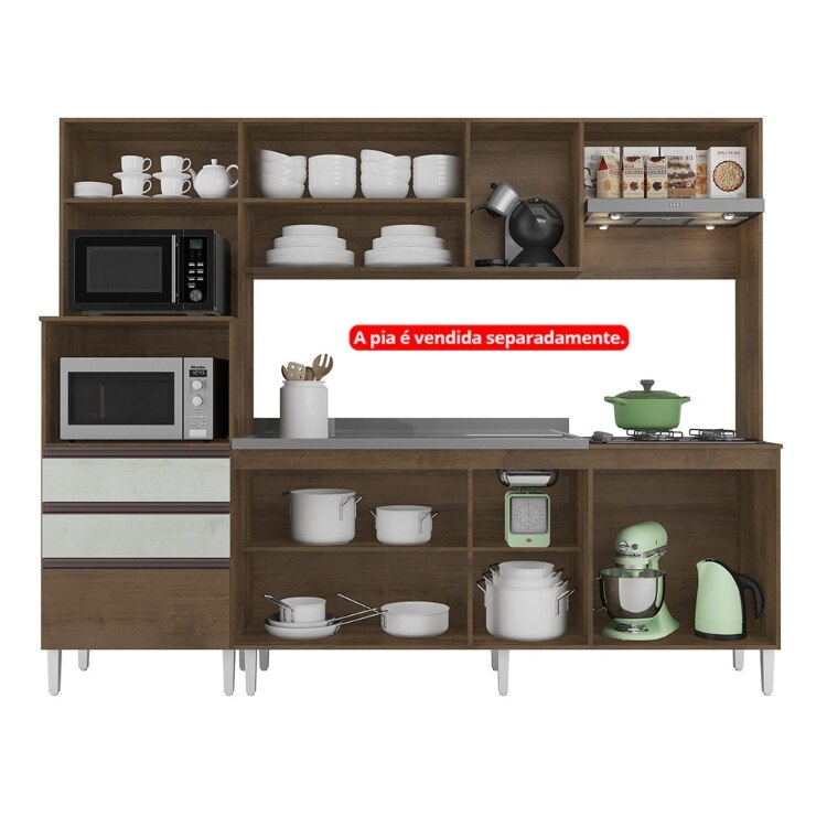 Jogo De Cozinha Completo Atenas 4 Pecas 10 Portas 3 Gavetas Castanho Tannat Delmarco