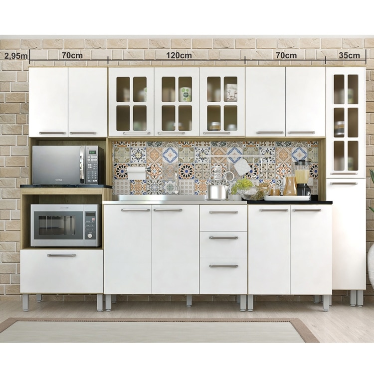 Armario De Cozinha Compacto 2 36 Metros Aramoveis Lara Ravello Branco Carrefour