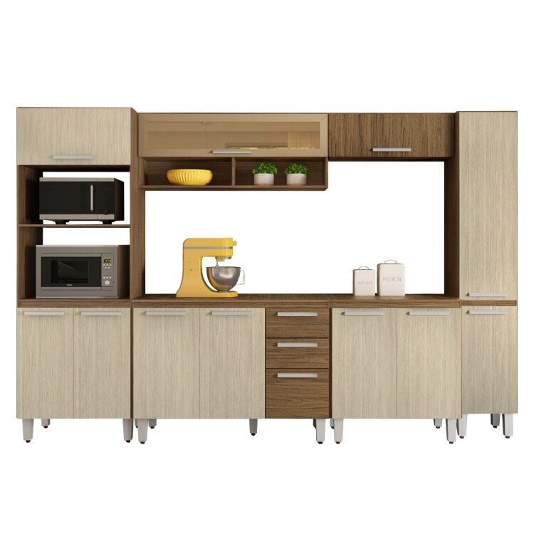 Cozinha Completa Niteroi 6 Pecas 3 10m 11 Portas Castanho Tannat E Nogueira Moval