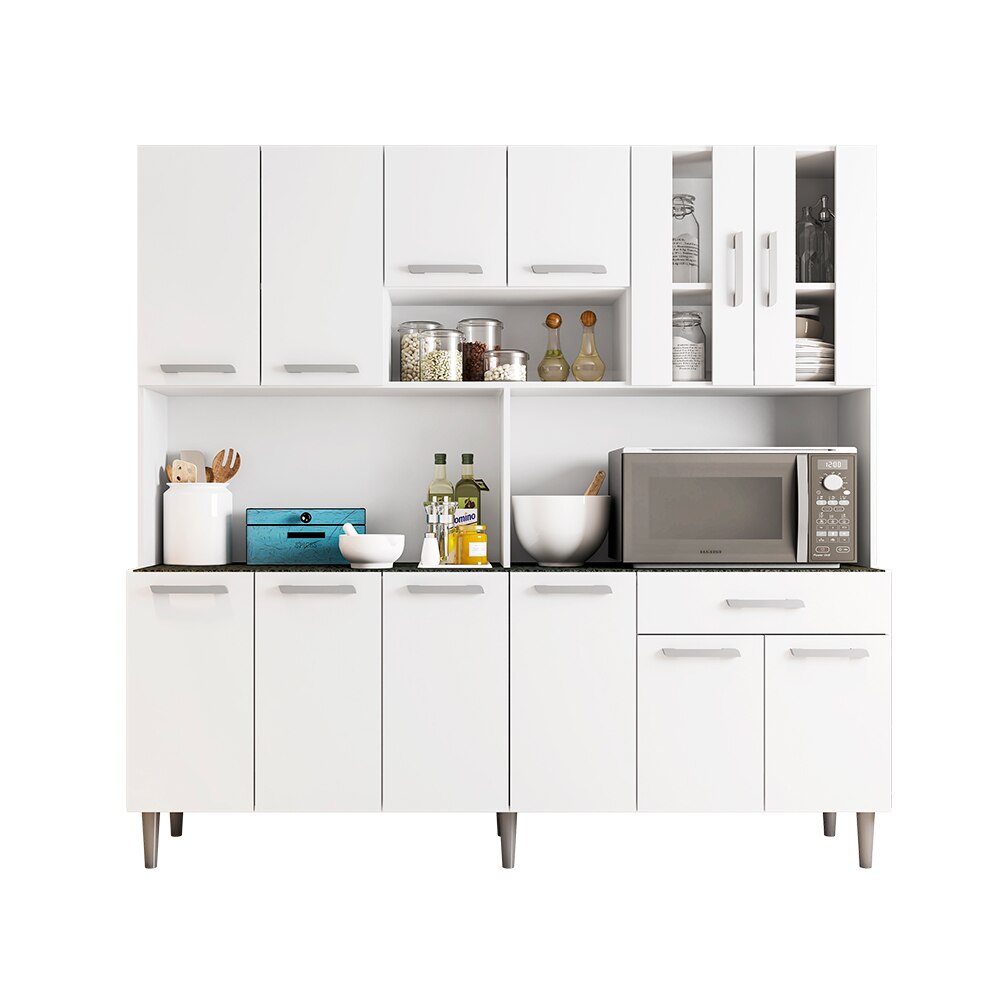 Cozinha Compacta Clara 12 Portas Vidro C53030 Branco Poliman