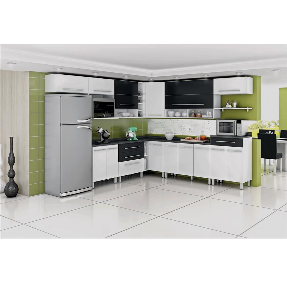 Cozinha Bartira Glamour Com 12 Portas E 7 Gavetas Branco Preto Cinza Vesuvio Cozinha Compacta Ponto Frio 9279045