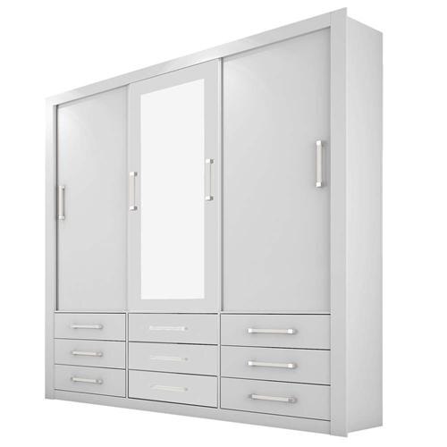 Armario Casal Vision Preimum 100 Mdf 3 Portas De Correr C Espelho 8 Gavetas Branco Guarda Roupas Quarto Moveis Mobillita