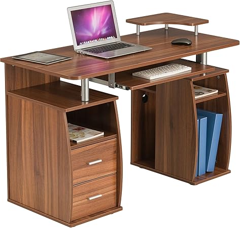Piranha Trading Escritorio Mesa De Ordenador Despacho Con Estantes Armario Y Cajones Para La Oficina En Casa Efecto Nogal Oscuro Pc 5n Amazon Es Hogar