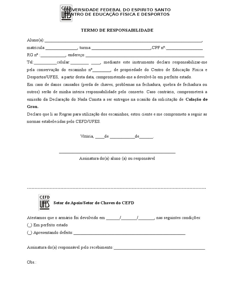 Termo De Responsabilidade Chaves Armarios Escolas