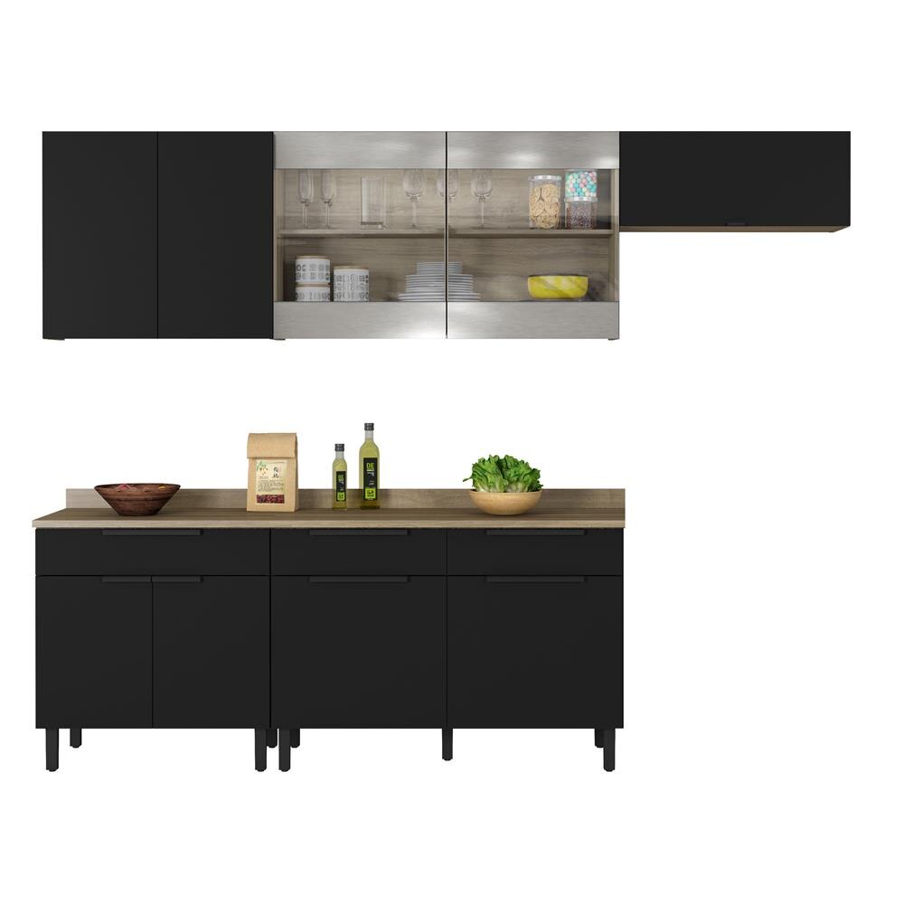 Cozinha Itatiaia Criativa Compacta 4 Pecaspaneleiro Armario Aereo 5 Vidros Gabinete Preto Vigia De Preco