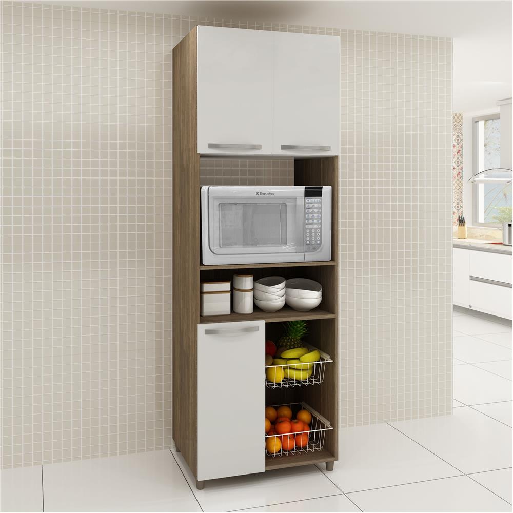 Conjunto De Armarios Star Com 3 Portas Nicho Para Microondas Itatiaia Branco Castanho Gabinetes Para Banheiro Extra 12576926
