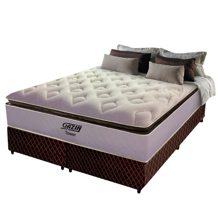 Cama Box Casal Molas Ensacadas Pillow Euro Top Queen Size Tower 158cmx75cm Branco Com Marrom Gazin