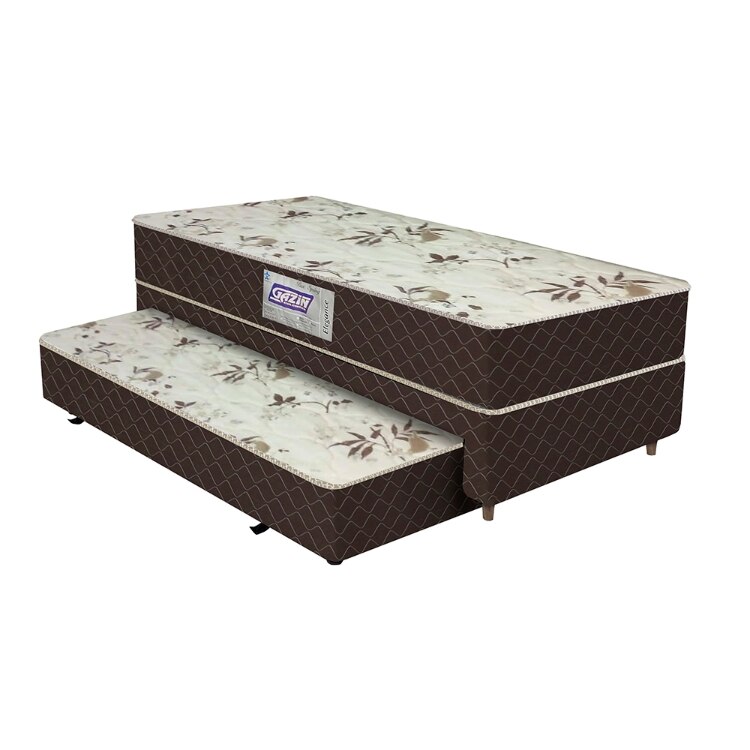 Cama Box Solteiro Conjugada Molas Bonnel Com Cama Auxiliar 88x48x188 Elegance Marrom Com Branca Gazin