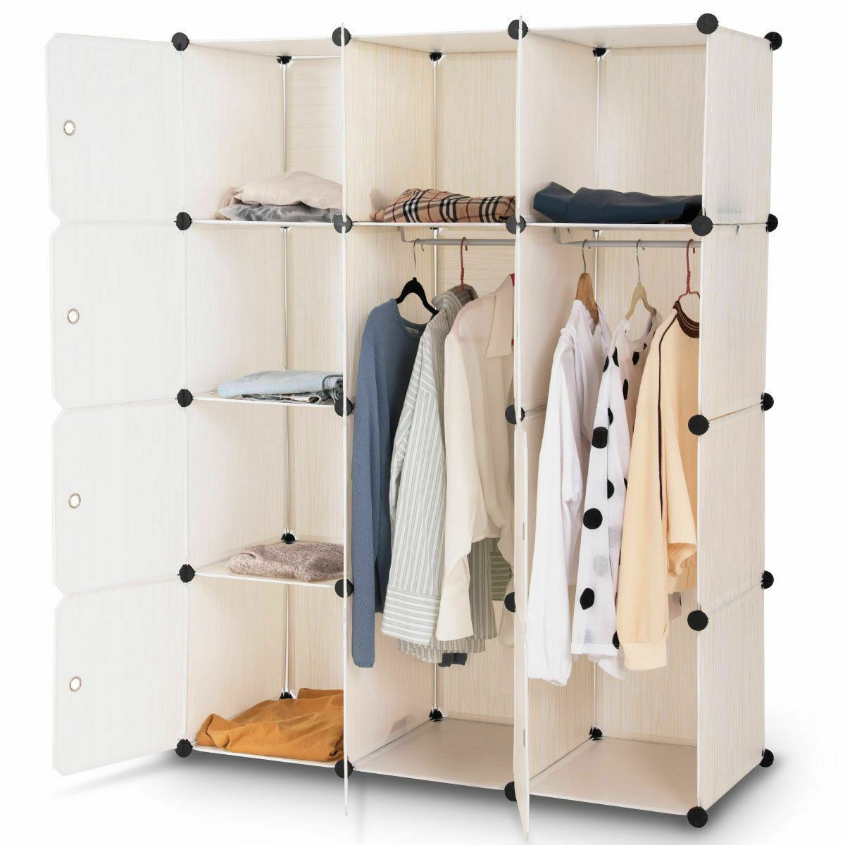 Dljfu Ropero Armario Portatil Armario Organizador De Almacenamiento Modular Ahorro De Espacio Armario Cubo Mas Profundo Con Varilla Para Colgar 4 Puertas Amazon Es Hogar