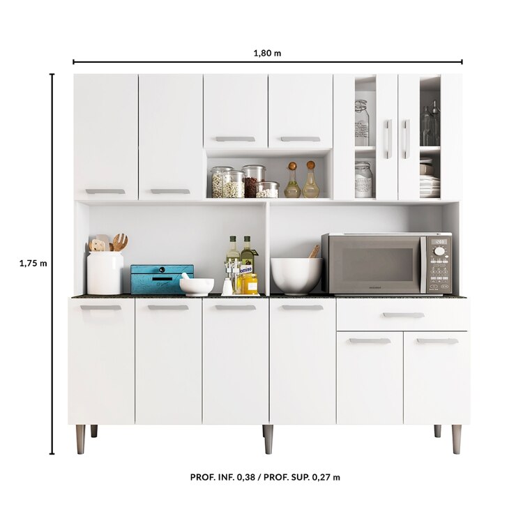 Cozinha Compacta Clara 12 Portas Vidro C53030 Branco Poliman