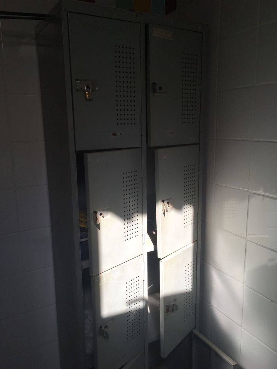 Roupeiro de aço novo ou usado 08 portas grande com pitão para cadeado fechadura com chaves opcional confeccionado em chapa de aço tratamento anti corrosivo pintura epóxi dimensões.
