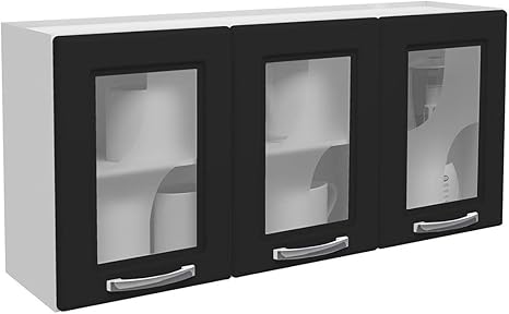 Armario Aereo 3 Portas Com Vidro Safira Telasul Branco Preto Amazon Com Br Casa