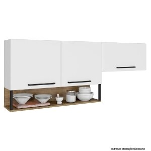 Sua casa vai ficar ainda mais completa com o armário da linha diamante da itatiaia produzido com material de qualidade conta com 3 portas e um nicho decorativo. Este armário é ideal para guardar utensílios domésticos tais como pratos copos panelas e muito mais. Conta com dobradiças metálicas de pressão puxadores em abs metalizados com verniz uv de alto brilho e resistente. Possui quatro peças sendo.