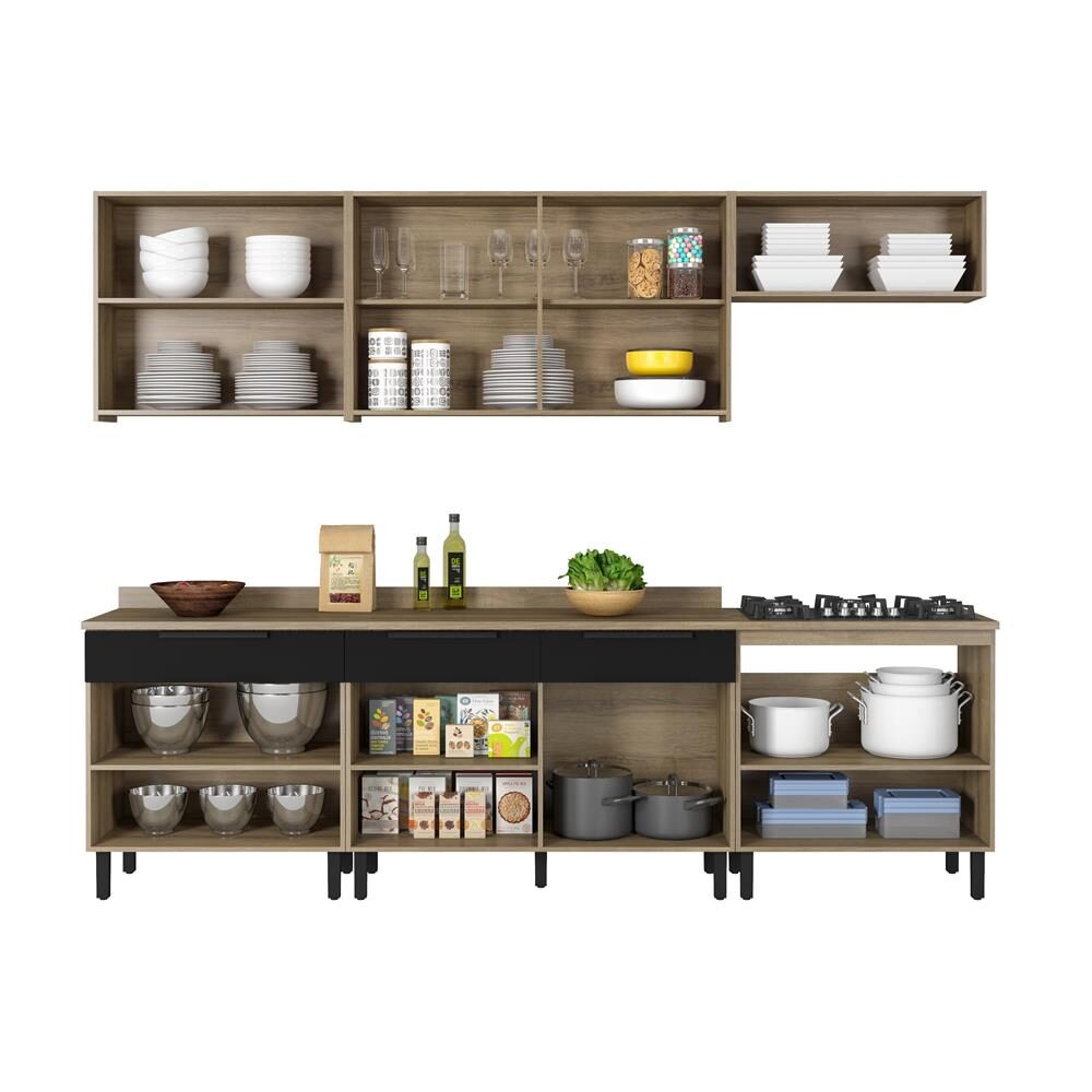 Cozinha Itatiaia Royale Com 16 Portas E 5 Gavetas Madeirado Preto Cozinha Compacta Extra 9160041