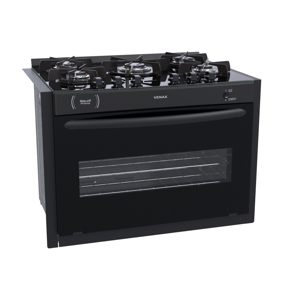 Fogao De Embutir 5 Bocas Venax Gaudi Prisma Vitreo Preto