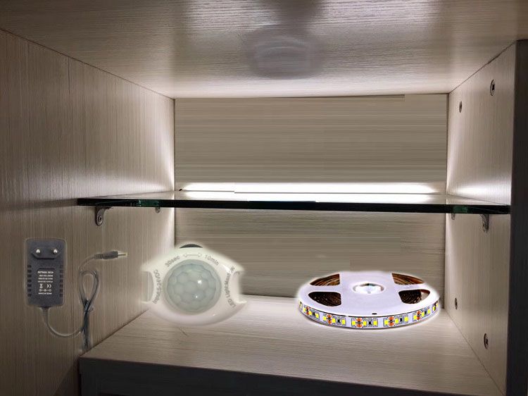 Branco 12v Sob As Luzes Do Armario Led Sensor De Movimento Cozinha Guarda Roupa Luzes Da Noite Gabinete Lampada De Exibicao Caso Guarda Roupa Luz Do Armario A Badosa Me