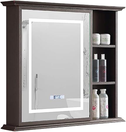 Nj Espejo Completo Armario Espejo Bano Con Luz Led Armario Con Estante Ahorre Espacio Armario Con Espejo De Bano Armario De Almacenamiento Mueble Espejo De Bano Amazon Es Hogar