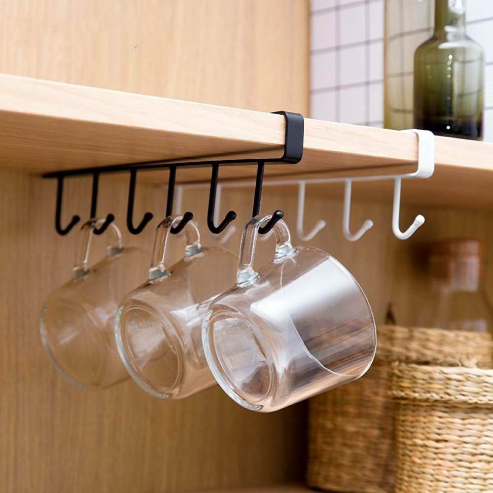 6 Ganchos Copo Titular Pendurar Armario De Cozinha Sob Prateleira Rack De Armazenamento Organizador Gancho Ali