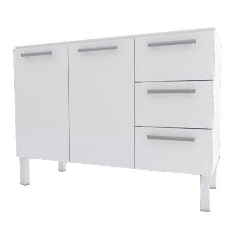 Balcao Gabinete De Pia Evidence Aco 120cm 3 Portas 1 Gaveta 7022 Branco Bertolini Mpozenato