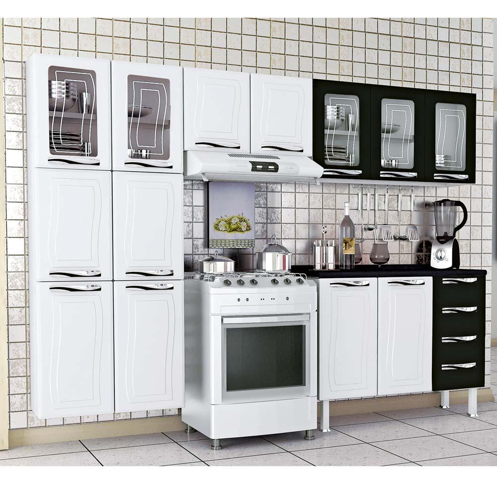 Cozinha Colormaq Ipanema Com 15 Portas E 4 Gavetas Branco Preto Cozinha Compacta Ponto Frio 9046727